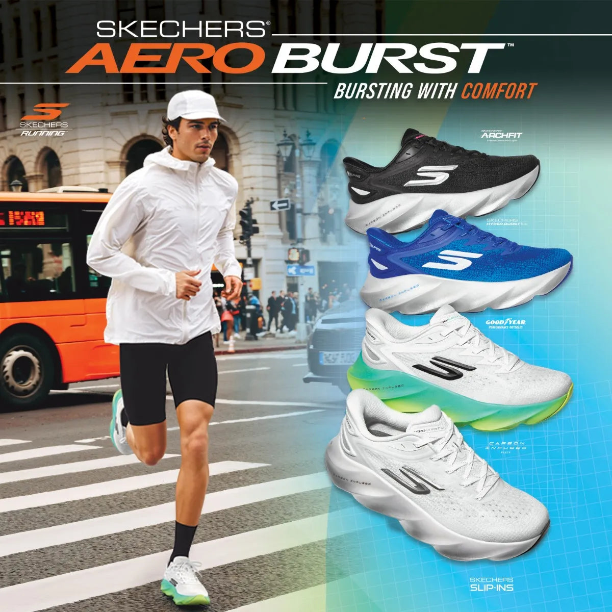 Lari dengan nyaman dengan Skechers Slip-ins®: Aero Burst™ — gabungan sempurna kenyamanan dan performa.