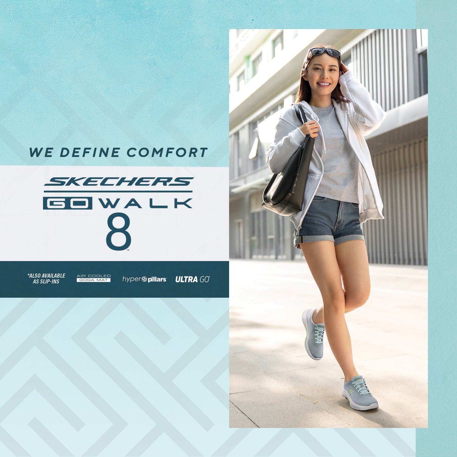 Rasakan kenyamanan maksimal dengan Skechers GO WALK 8 — Heel Pillow® dan insole Air-Cooled Goga Mat™.