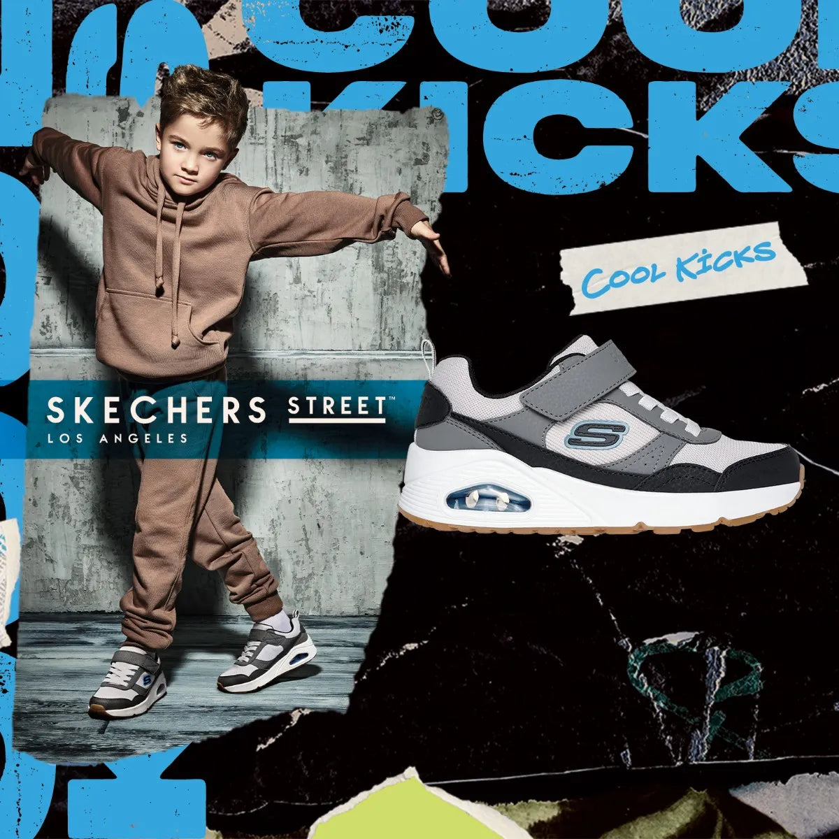 Gaya dan nyaman dengan Skechers Street™ UNO — tali elastis, strap, dan insole Air-Cooled Memory Foam®.
