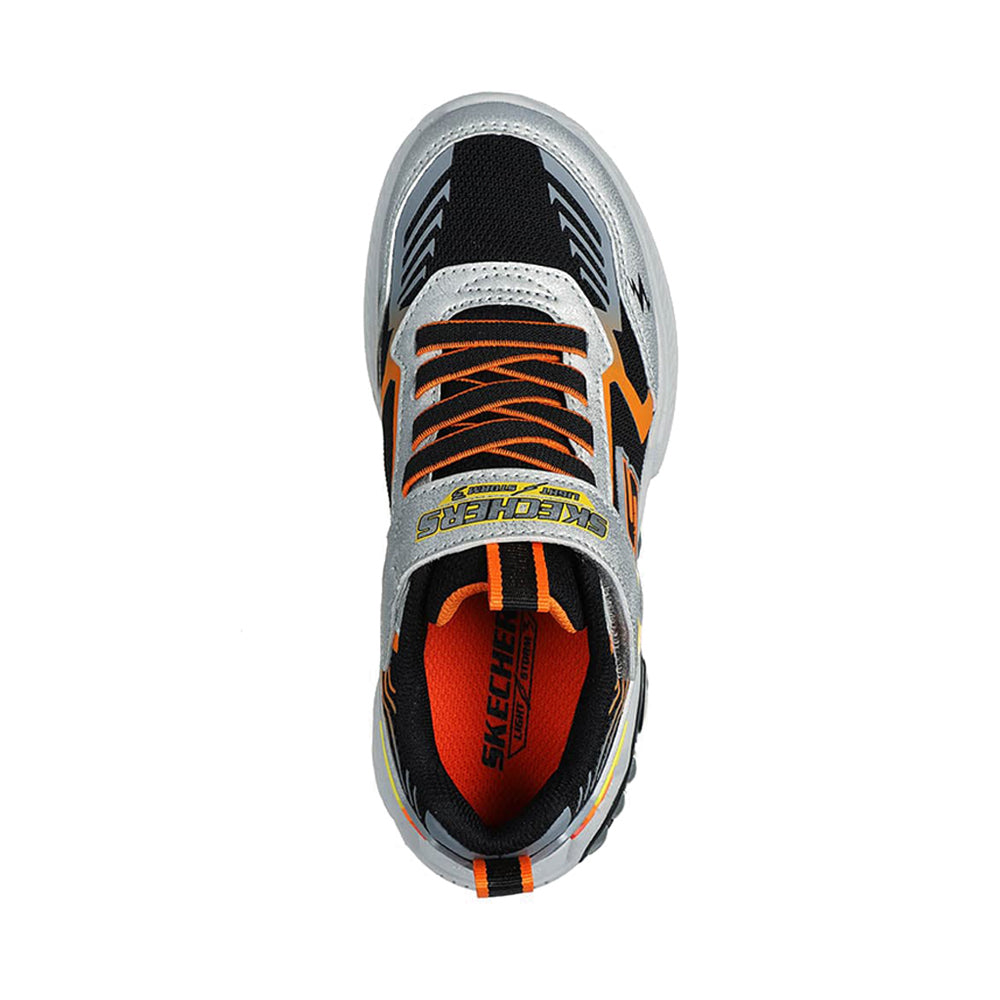 Step with a bolt of comfort and sporty style in Skechers S-Lights®: Light Storm 3.0. This thematic sneaker features a mesh and synthetic upper with a multicolored light-up tech piece midsole, stretch laces, and adjustable instep strap.