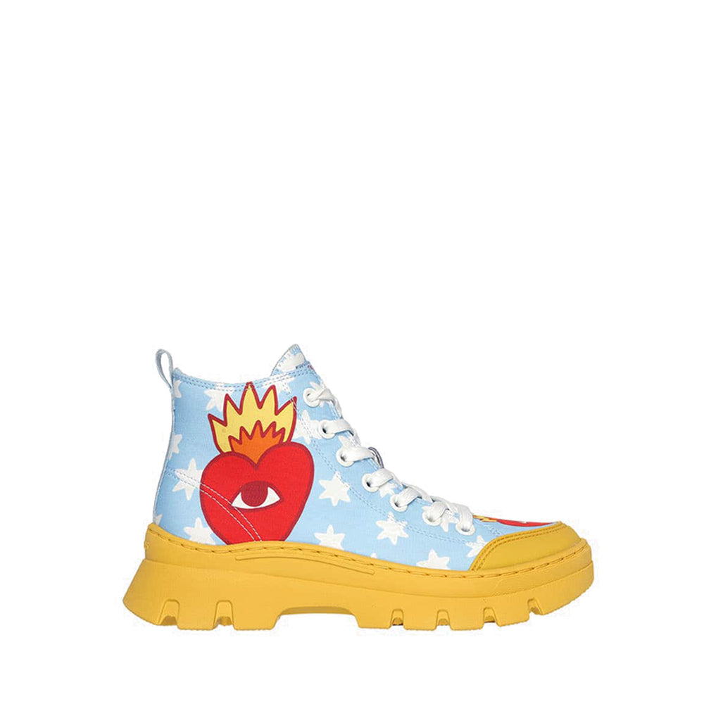 Canvas Signature Ricardo Cavolo Flaming Heart Printed High Top Fashion Sneaker